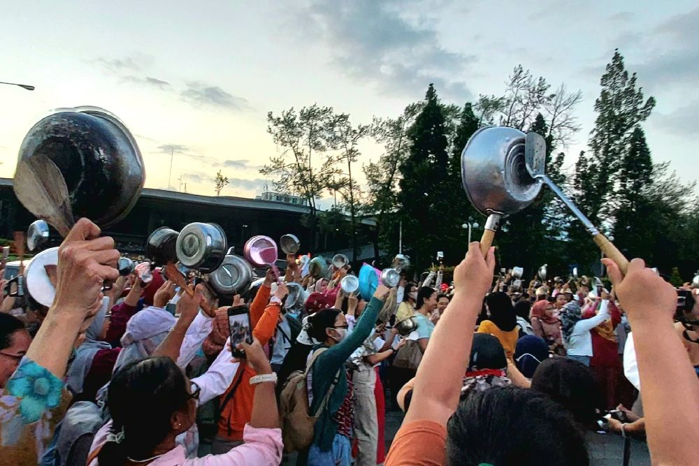 Emak-Emak Pukul Panci di Bundaran UGM, Tuntut Program MBG Dihentikan Total